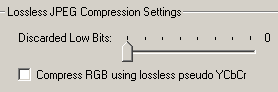 - El PICVideo Lossless JPEG codec tan sólo cuenta con una ventana de configuración en la que seleccionar el tratamiento de color como YUV o como psudo YCbCr y la cantidad de bits de baja resolución a descartar (0-7)
