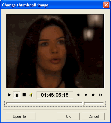 Verde: controles usuales de un reproductor de vídeo. Por este orden, marcha, pausa, paro, moverse hacia atrás de fotograma en fotograma, moverse hacia atrás de cuadro I en cuadro I, moverse hacia adelante de cuadro I en cuadro I y moverse hacia adelante de fotograma en fotograma. Como ya se ha indicado en el punto anterior, sólo se podrá definir como imagen para el capítulo un cuadro I. Si no se quiere sonido, se debe pinchar el altavoz de la derecha.