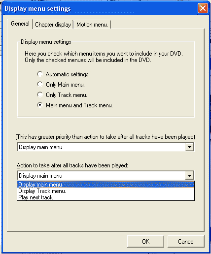 Por último, se define lo que se mostrará al acabar cada película (all tracks): Mostrar menú principal, Mostrar el menú de capítulos de esa película, Reproducir la siguiente película.