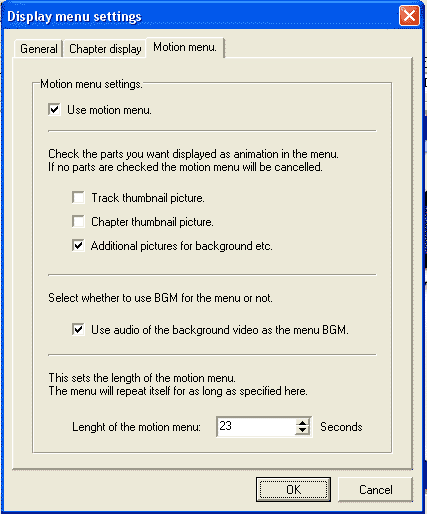 (Mostrar capítulos) y Motion menu (Menú animado).