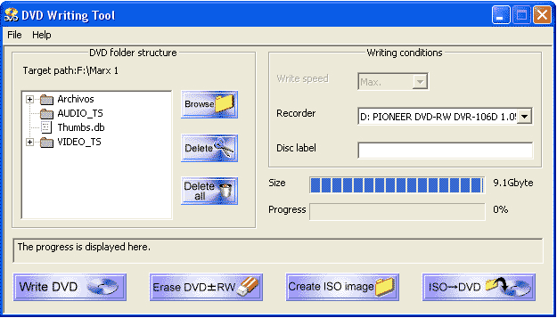 se pincha en Write DVD (Grabar DVD) y comenzará la