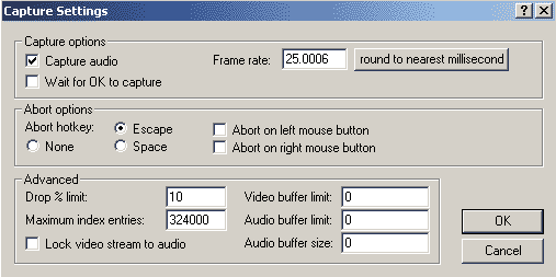 - Compression (compatibility) (compresión en compatibilidad): Si, por cualquier motivo (problemas normalmente), no queremos utilizar las características de captura especiales que aporta VirtualDub, como el soporte de archivos de más de 2Gb y su control de transmisión de datos al disco duro, podremos capturar usando los códecs de compresión con los parámetros que aporta la capturadora por defecto y que, por tanto, si la capturadora y sus drivers (controladores) está bien instalada no debe dar ningún problema.