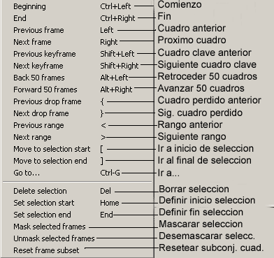 - WAV audio: Opción muy interesante si para el AVI resultante *NO* queremos usar el mismo archivo de audio que tiene el AVI que hemos importado. Si comprimimos el vídeo por un lado, y el audio por otro (sin usar Virtual Dub) con esta opción podremos "juntarlos", siempre que el audio esté en formato WAV.
