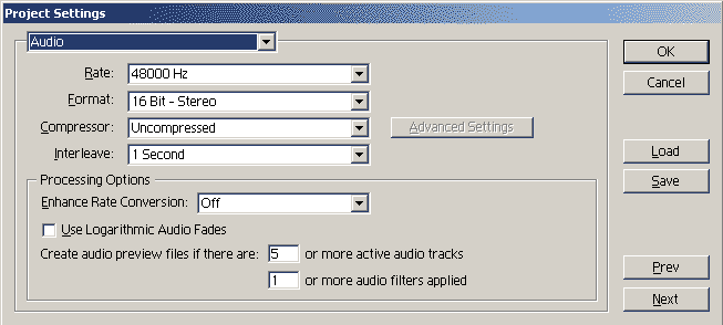 - X or more audio tracks (X o más pistas de audio)- X or more filters applied (X o más filtros aplicados)El la edición de vídeo la mayor carga de procesado se la lleva el vídeo, de modo que mientras editamos en la línea de tiempo es frecuente hacer previos de vídeo, pero normalmente el audio se lee directamente y, de realizar algún efecto, se puede hacer "al vuelo", en tiempo real, mientras vamos viendo el proyecto. A través de éstas opciones podremos definir en qué casos se realizarán previos de audio. Cuanto más potente sea nuestro equipo, más podremos "suavizar" estas condiciones.[/list]