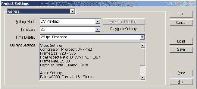 · Timecode Format: Desconozco su función. Mi videocámara tan sólo me deja seleccionar la que aparece en la imágen, y el manual de Premiere tan sólo indica "Elija la opción adecuada para su videocámara"