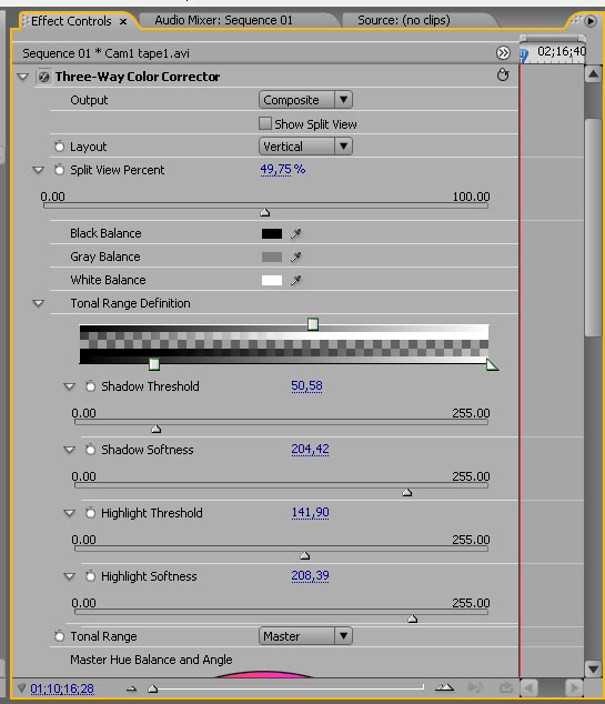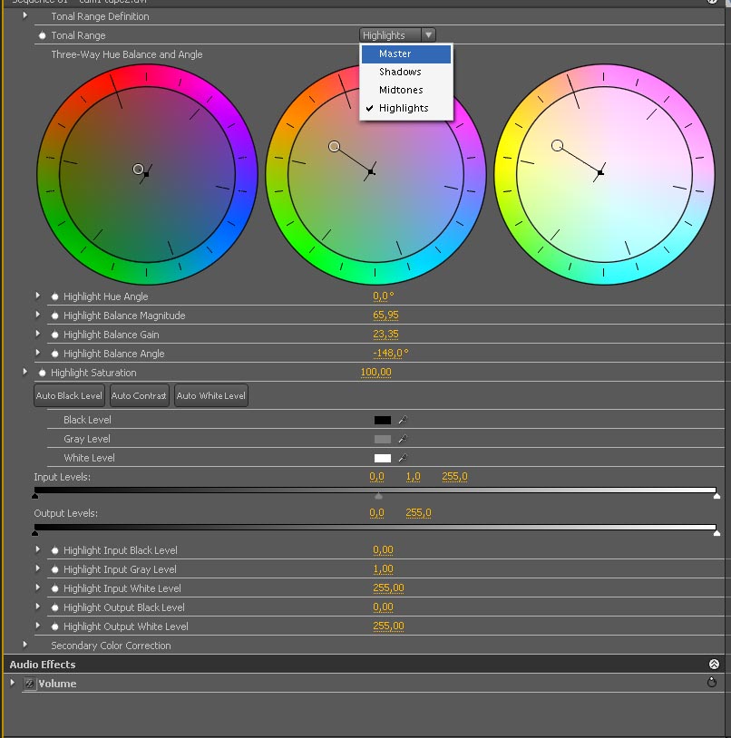 Bueno.... para añadir algo mas... TONAL RANGE DEFINITION (dentro de la correccion de color de 3
