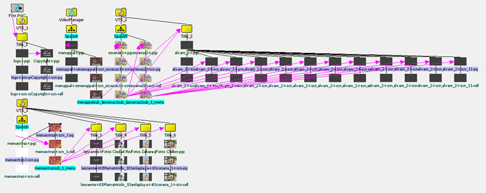 Una vez montados todos los tracks que compondrán nuestro proyecto, es hora de estructurar la navegación que el disco presentará a quien lo vea. Para ello pinchamos en la pestaña Scenario Editor. Esta ventana consta a su vez de otras dos, una pequeña a la izquierda donde aparecen todos los tracks que hemos montado y otra mayor a la derecha donde iremos organizando dichos tracks.
