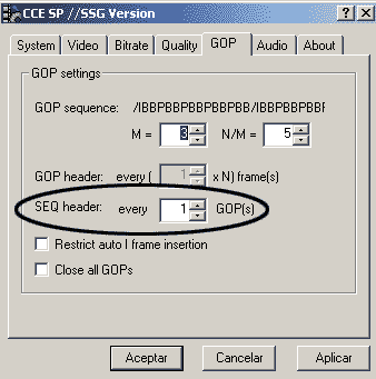 Una vez terminada la edición tan sólo deberemos exportar el resultado en formato VCD, usando un plug-in para como Panasonic MPEG-1, Cinema Craft Encoder, bbMPEG ó Ligos LSX-MPEG en el caso de trabajar con Adobe Premiere, por ejemplo. Para una mayor compatibilidad recomiendo usar una secuencia GOP de 15 cuadros que podemos conseguir, o bien con 3 cuadros I y otros 3 cuadros B por cada cuadro I (I BBB P BBB P BBB P BBB ...) o con 4 cuadros I y dos cuadros B por cada cuadro I (I BB P BB P BB P BB P BB ...)