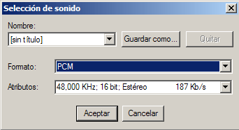 - 44.100 KHZz, 16 bits estéreo: Con el audio sucece lo mismo que con el vídeo, puesto que al pasarlo a VCD lo comprimiremos. Es mejor dejarlo de momento sin comprimir