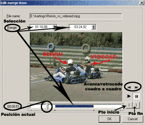 Si no queremos procesar todo el archivo con ésta opción podremos seleccionar el rango de vídeo a comprimir. Lo podemos definir en unidades de tiempo (ms, milisegundos) o en Frames (cuadros)