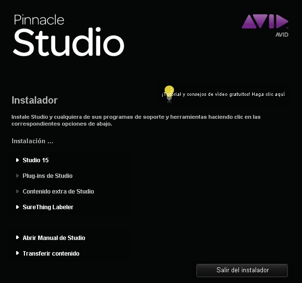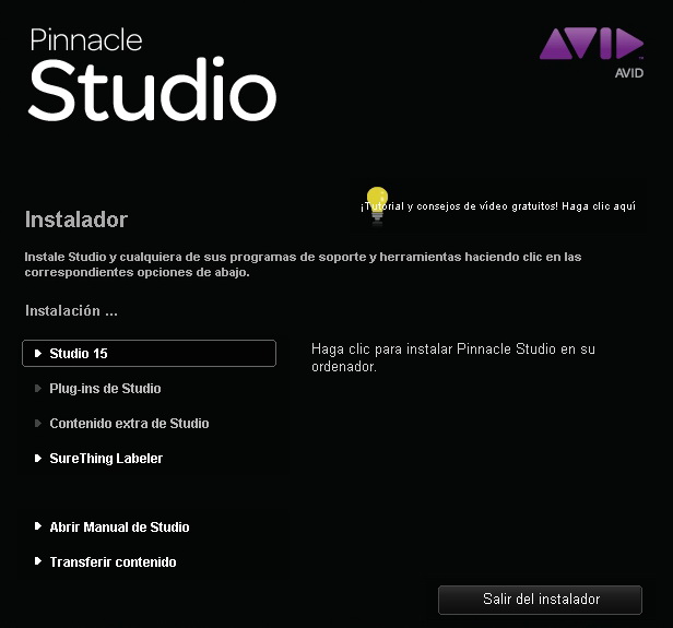 Figura 3 - Pantalla inicial del instalador de Pinnacle Studio 15