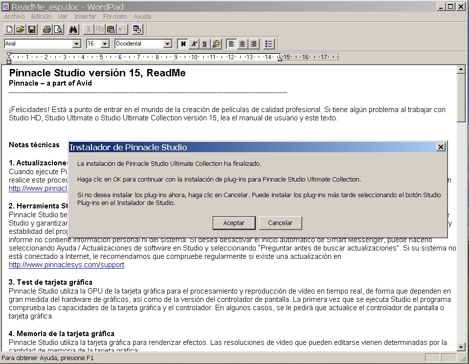 Algo que debemos de leer y comprender para realizar la instalación de Studio-15, en el directorio (por defecto) C:\Archivos de programa\Pinnacle\Studio 15
